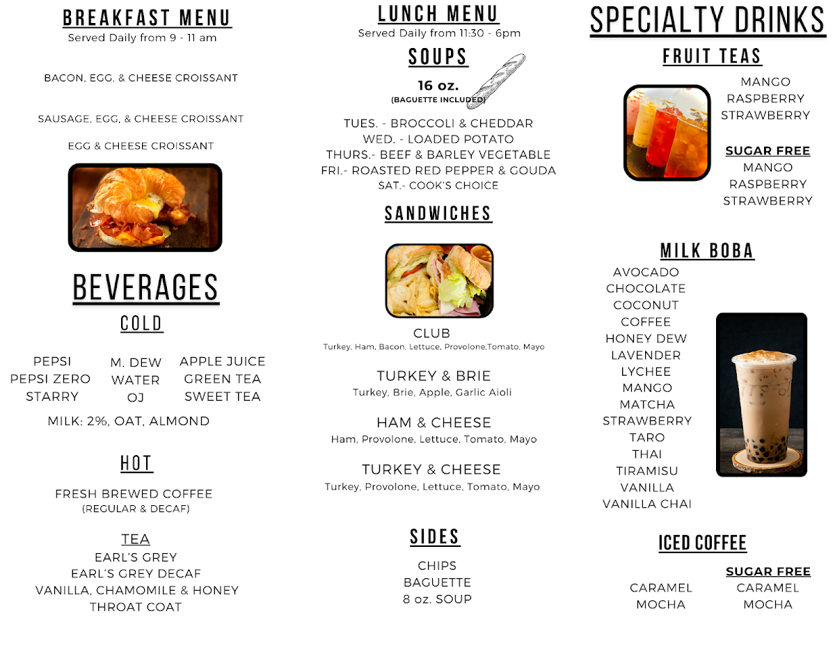 - Beverages: Sip on rich coffees or refreshing fruit teas, with unique flavors like mango peach and strawberry dragonfruit to elevate your visit.